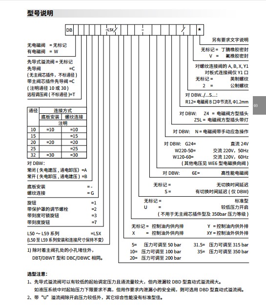 | 油口 Y or T DBW | bar | 交流至160,直流至210 | ||||||