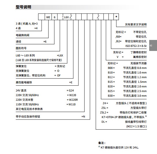 | 工作壓力 | 油口 T | bar | 210 (DC),160 (AC),當(dāng)工作壓力超出允許壓力時,機(jī)能為A、B的三通閥必須使用T為泄油口。 | |