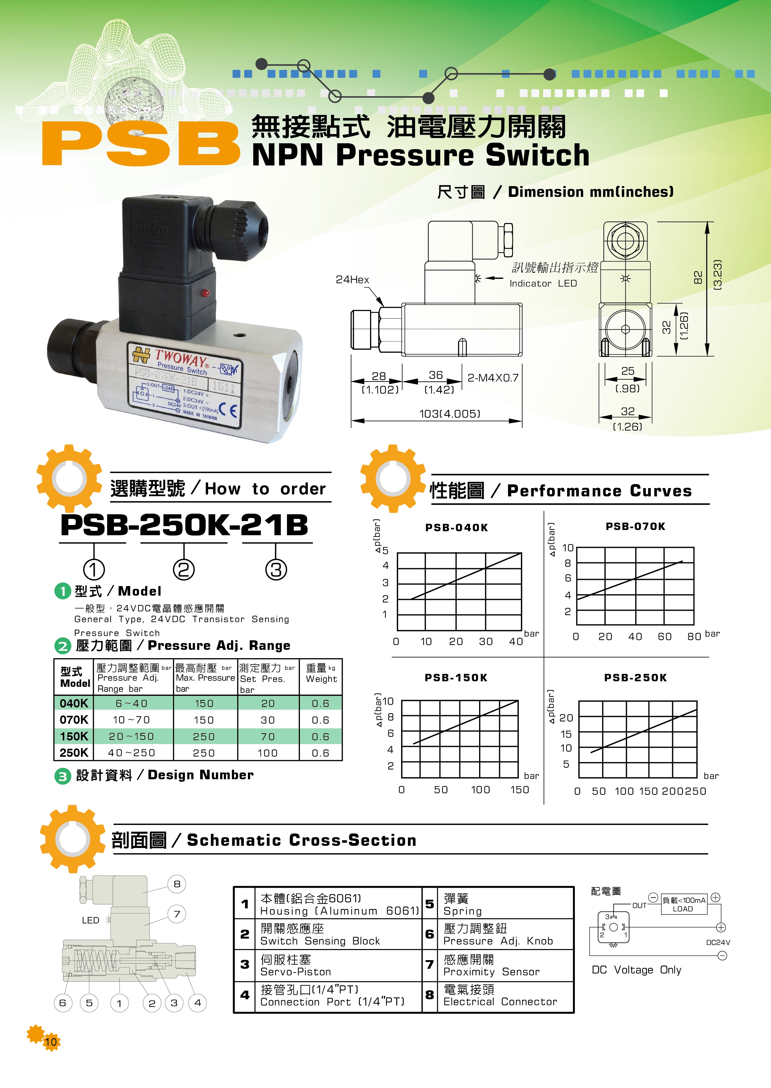 TWOWAY臺肯壓力繼電器PSB-250K-21B